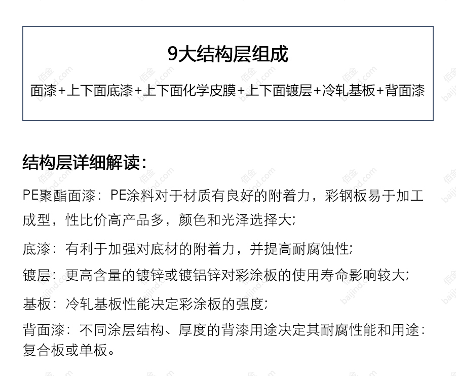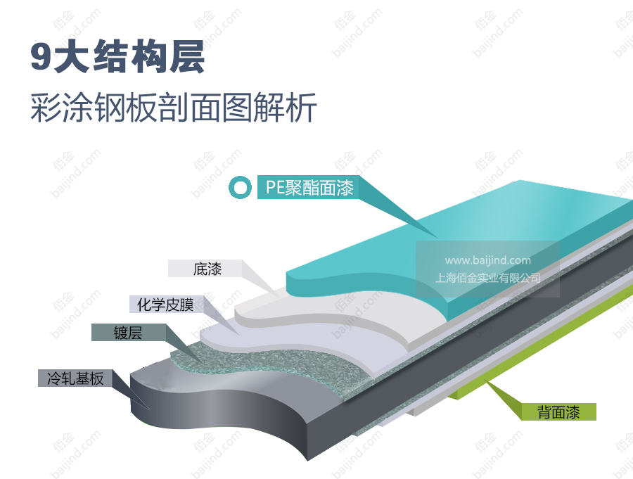 PE聚酯彩涂板附著力良好,在成型性和室外耐久性方面范圍較寬, 耐化學(xué)藥品性中等。廣泛應(yīng)用于普通工業(yè)廠房及倉儲物流庫房的圍護(hù)系統(tǒng)中。