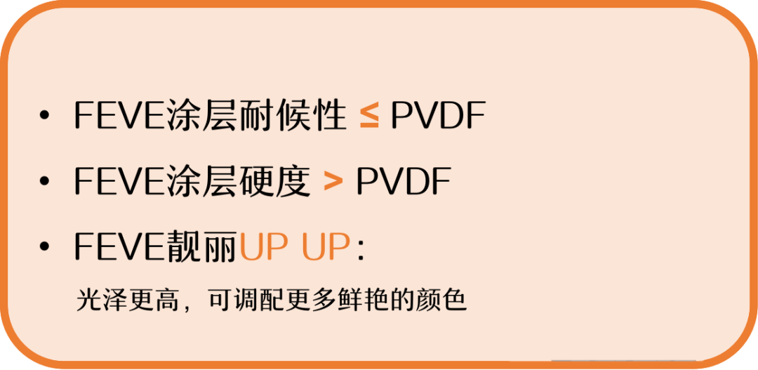 FEVE是聚氟烯烴-烷基乙烯基醚共聚或者氟烯烴-烷基乙烯基酯共聚樹脂的英文縮寫,該樹脂制成的涂料具有高光澤、高透明度的特點,兼具優秀的耐候性可在常溫下交聯固化,也可以適應高溫固化。