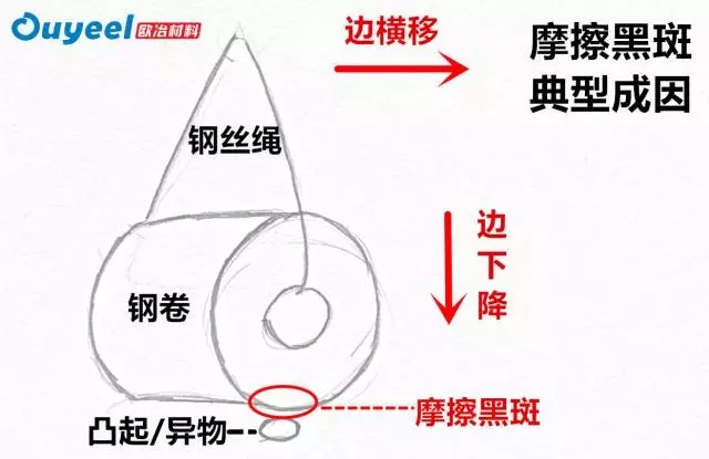 摩擦黑斑:是一種“產生原因+典型形貌”的命名方式,本質上是薄板產品層與層之間發(fā)生位移造成的磨損。